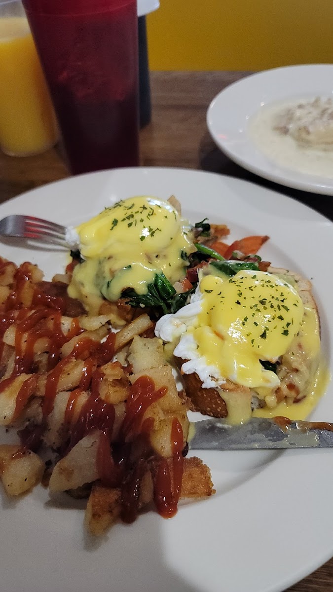 The interior is modest in size, with around a dozen tables and booths, which makes for a bustling but intimate environment, especially on weekend mornings when a short wait for a table isn’t uncommon. The seating arrangement can feel a bit snug, so those needing accessible entry might find the foyer layout a little awkward. Still, the staff tends to be attentive and welcomes guests warmly, which helps smooth over the cozy quarters.